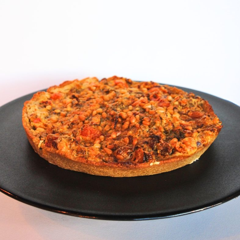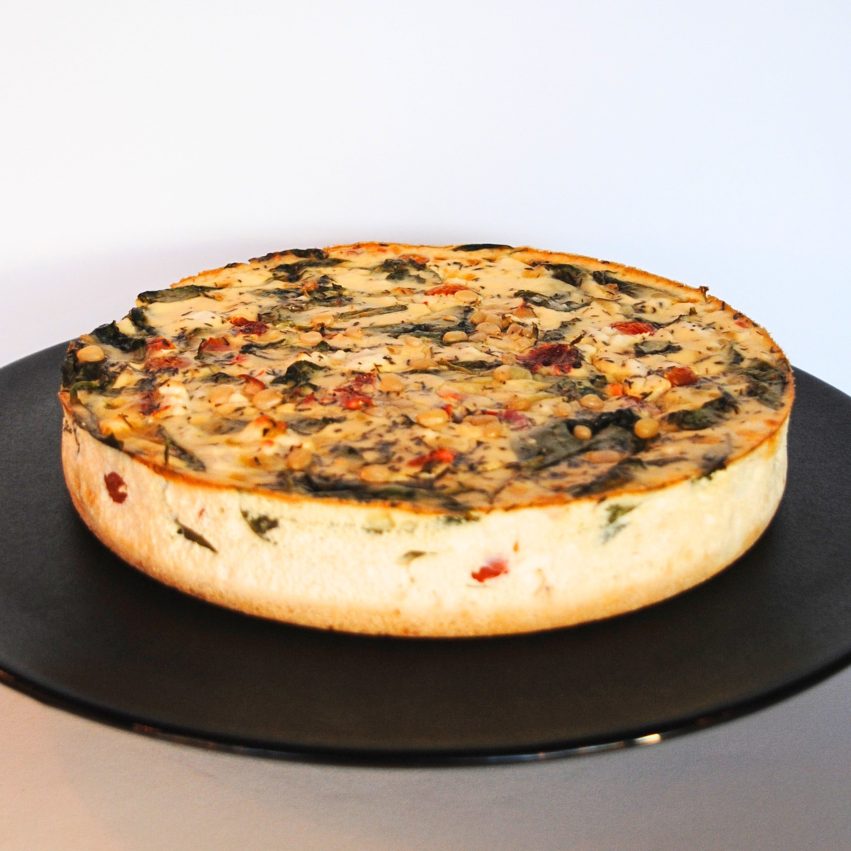 Erittäin ruokaisa piirakka, jossa kotimaista kananfilettä, miniluumutomaattia, puolikuivattua tomaattia, pinaattia sekä salaattijuustoa.