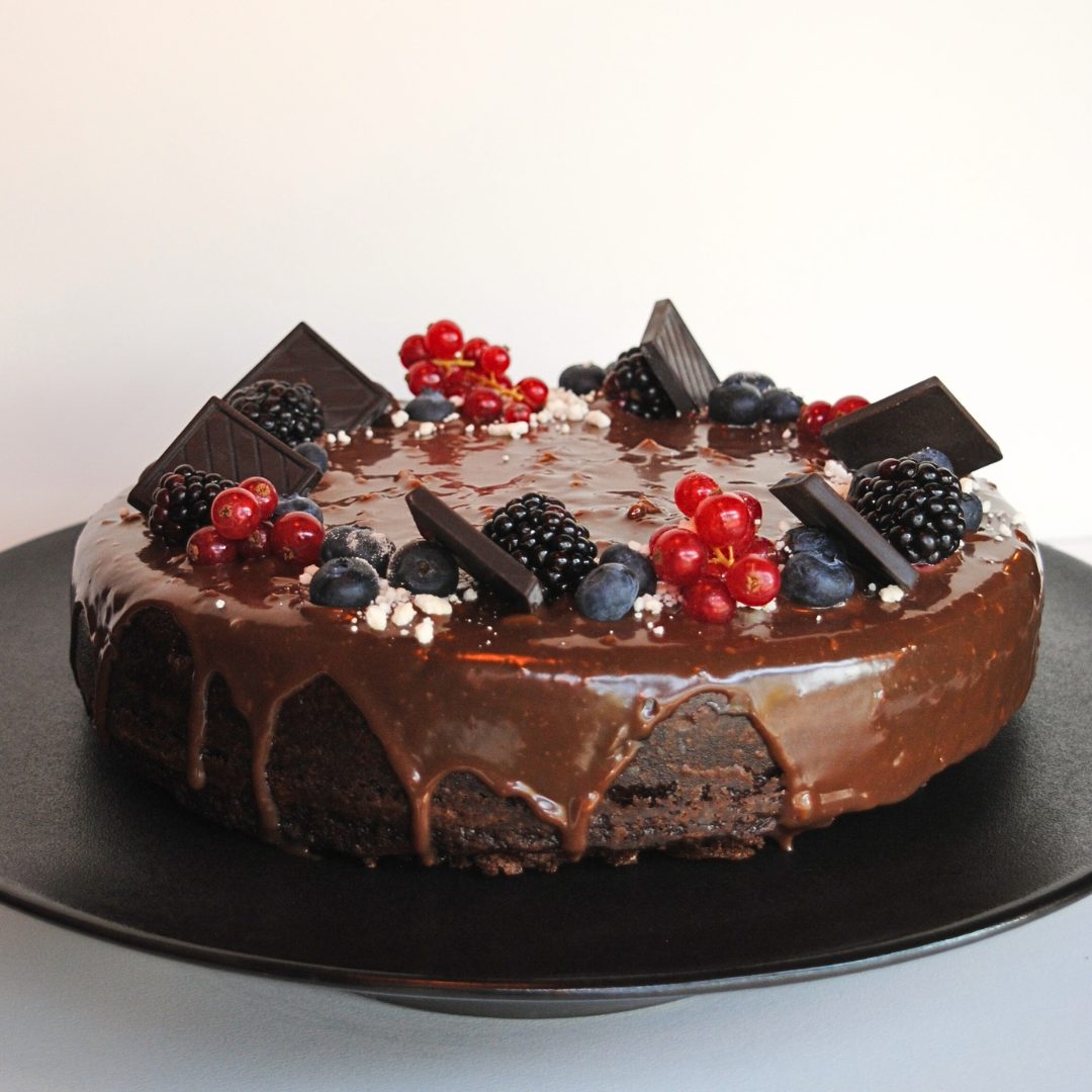 Pella’s cafe & bakeryn kestosuosikki. Talon suklaakakku on täyteläinen ja mehevä ja se on kuorrutettu daimkrokanttia sisältävällä maitosuklaalla. Kakku on saatavilla myös laktoosittomalla maito- tai tummasuklaakuorrutteella.