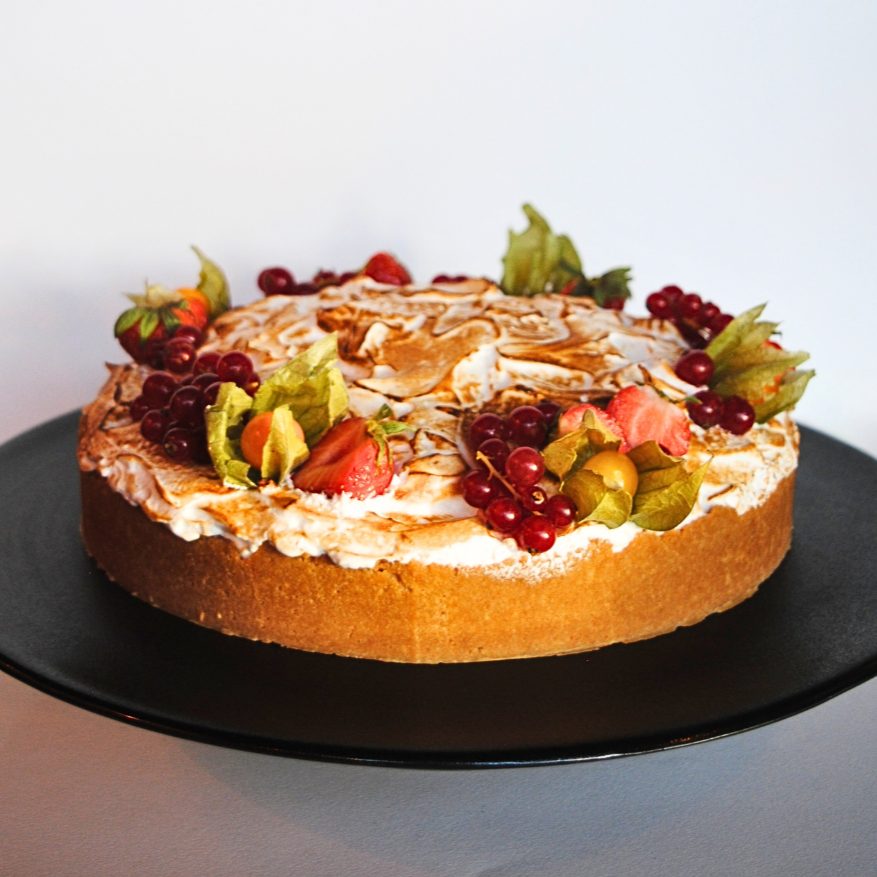 Rapea keksipohja yhdistyy runsaaseen kerrokseen raikkaan kirpeää passioncurd-täytettä ja ylellisen pehmeään paahdettuun italialaiseen marenkiin.